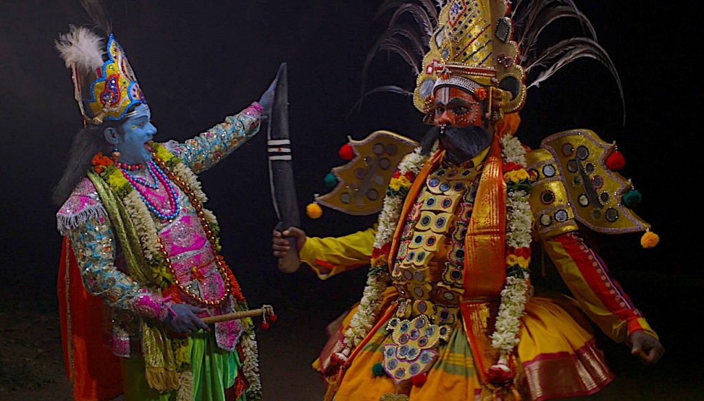 Taking a character-driven approach, Bride of Aravan follows Bawadharini, a transgender woman in South India, as she navigates the joys, grief, and challenges of life in a prejudiced society. Once a year, her community celebrates a vibrant two-day festival in which they ceremonially marry the warrior god Aravan—an ancient ritual drawn from the Mahabharata epic in which Aravan consents to die in battle only after becoming married. To fulfill his wish, Krishna takes the female form of Mohini to become his bride for one night.
